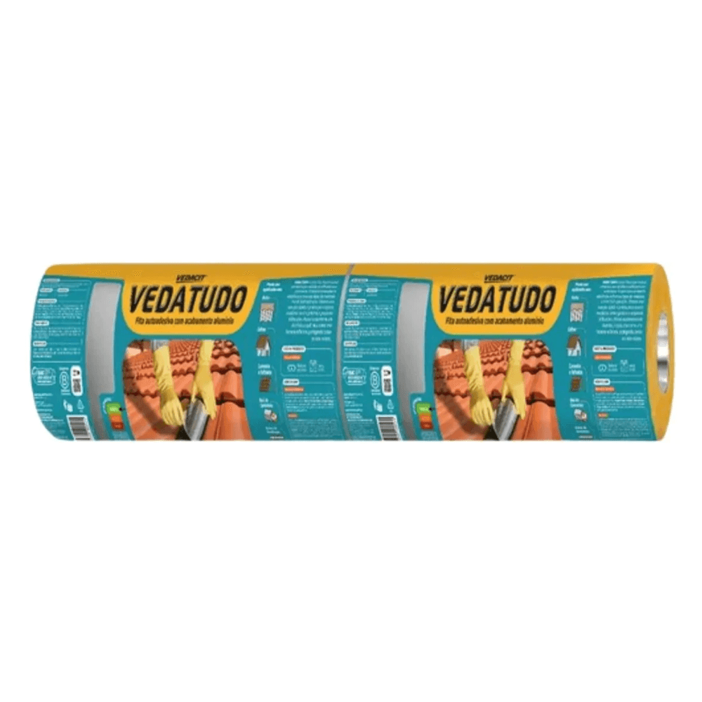 A Fita Veda Tudo Vedacit é composta por asfalto modificado com polímeros, com uma face superior coberta com uma lâmina de alumínio e uma face inferior protegida por um filme plástico siliconado. Sua composição garante a aderência, a impermeabilidade e a resistência do produto.