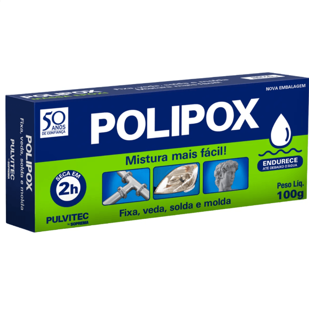 A Massa Epóxi Polipox 100g da Denver/Pulvitec é um adesivo epóxi bicomponente, no formato de massa moldável, ideal para uma infinidade de reparos, colagens, vedações e preenchimentos. Sua fórmula de secagem rápida e alta resistência torna-se uma ferramenta indispensável para consertos em residências, oficinas, no artesanato e na construção civil. A massa é moldável como uma massinha de modelar, facilitando a aplicação em diversas superfícies e formatos, até mesmo debaixo d'água.