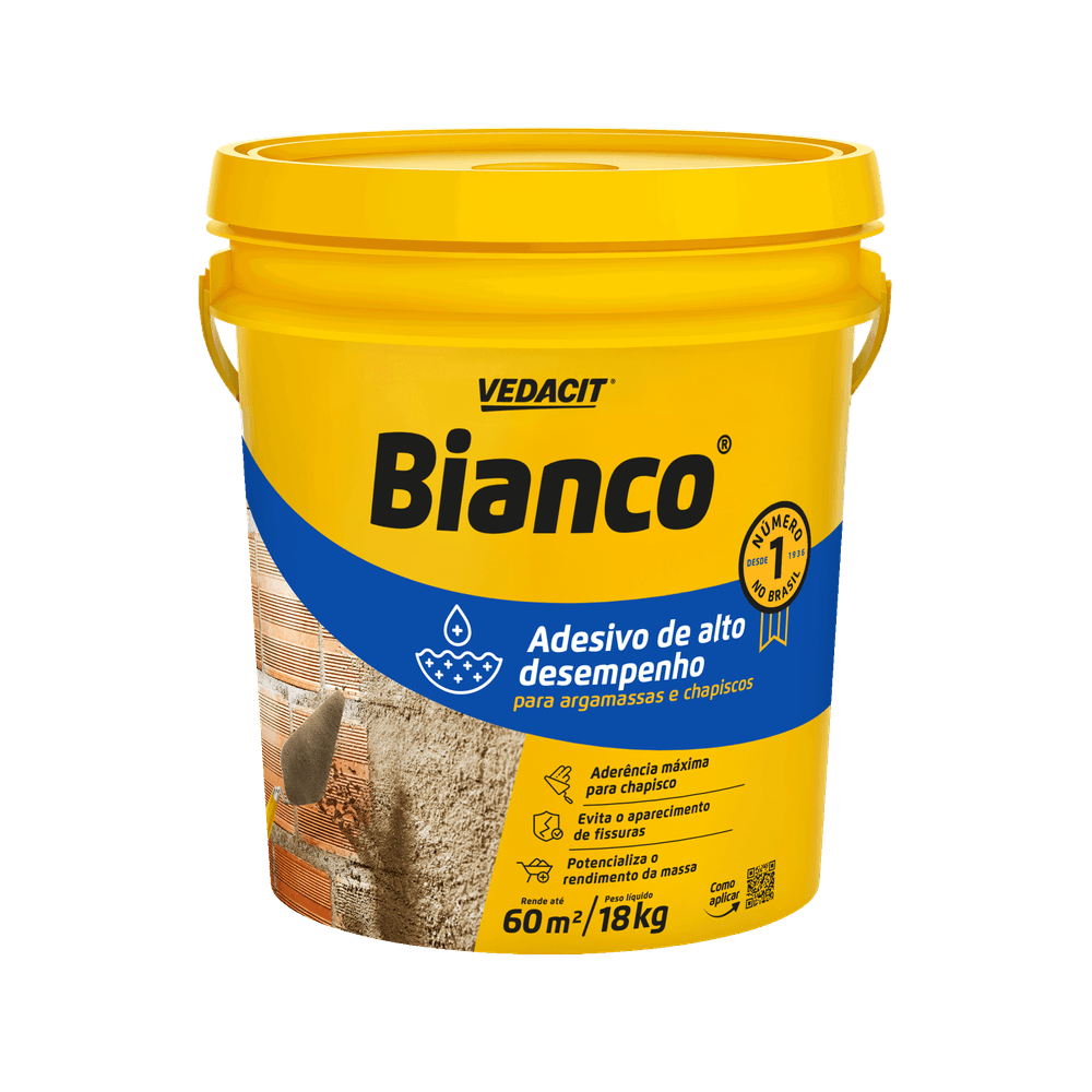 BIANCO é uma resina sintética, de alto desempenho, que proporciona excelente aderência das argamassas aos mais diversos substratos. Confere maior plasticidade, melhora a impermeabilidade e evita a retração das argamassas. Pode ser usado em áreas externas e internas ou sujeitas à umidade.