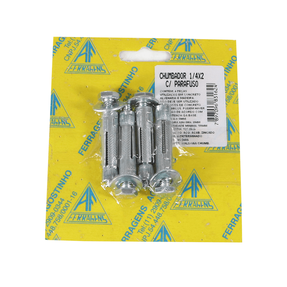 O Chumbador CBA 1/4X2" Com Parafauso 4 Peças Ferragens Agostinho é o produto ideal para seu projeto.