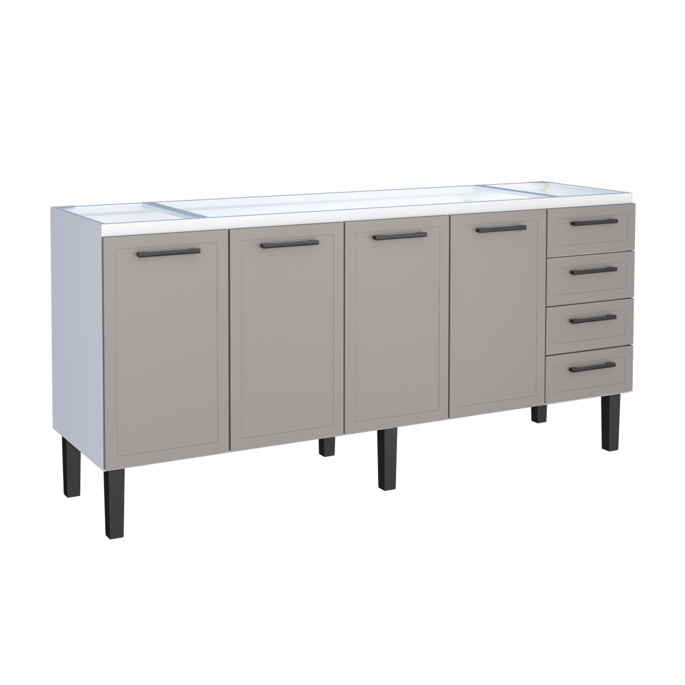 O Gabinete para Cozinha em Aço Juno 91,2x192cm Cinza da Cozimax possui ótima resistência e durabilidade. Conta com design moderno com cantos retos, detalhe clássico rebaixado nas portas e gavetas. Fabricado em aço eletro galvanizado com garantia de 5 anos. Protegido por pintura em pó eletrostática, puxadores em ABS na cor preta, gavetas mais profundas mais resistentes a impacto e ressecamento, pés com regulagem e divisor de talheres.