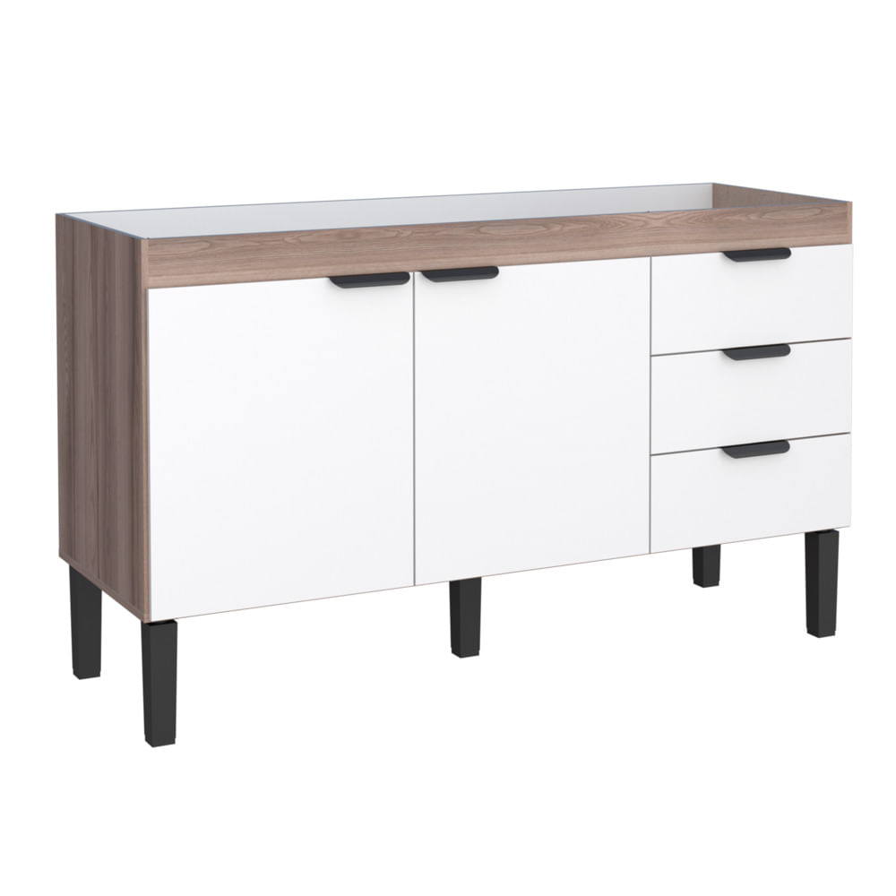 O Gabinete de Cozinha em Madeira Flamingo apresenta combinações da cor madeirada com portas em branco ou preto semi brilho. O Flamingo possui gavetas com corrediças telescópicas, exclusivos puxadores em aço eletrogalvanizado da Cozimax, e pés com regulagem de altura em polipropileno virgem na cor preta, que não ressecam e não quebram.
