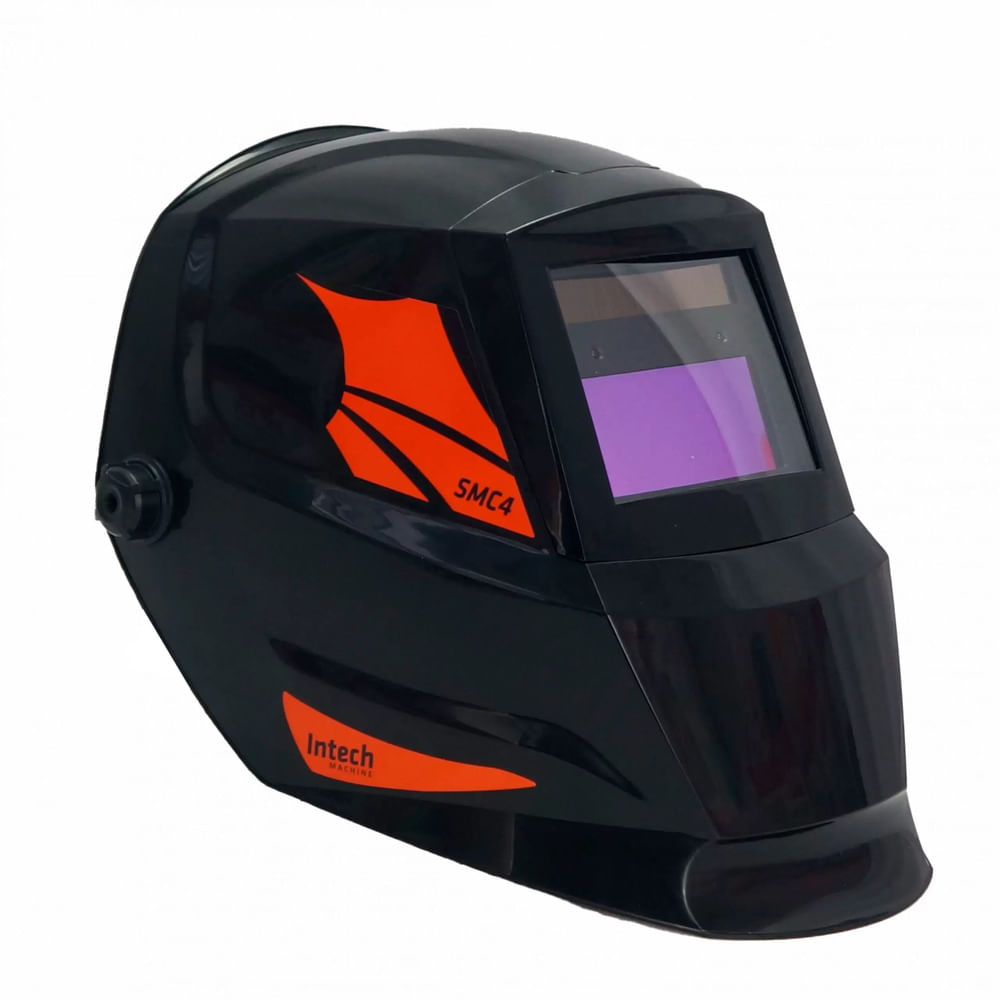 A máscara de escurecimento automático SMC4 da Intech Machine foi projetada para proteger a face dos usuários de faíscas, raios ultravioletas e infravermelhos, nos processos de soldagem MIG/MAG, TIG, Plasma e eletrodos revestidos.