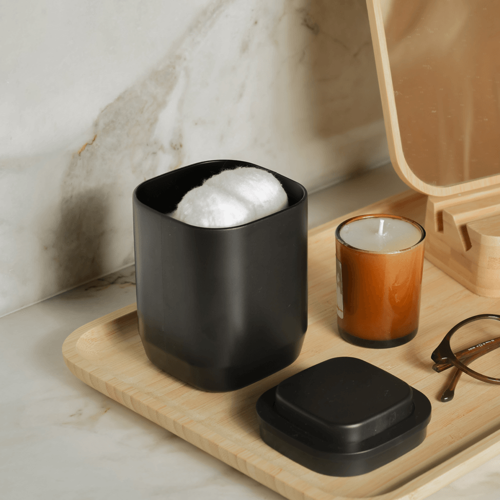 O Porta Algodão Aura Preto Ou combina elegância e funcionalidade para deixar o banheiro mais organizado e charmoso. Com design moderno e acabamento sofisticado nac or preto, ele é perfeito para armazenar algodões de forma prática e higiênica. Fabricado com material resistente e de fácil limpeza, o acessório mantém os itens sempre ao alcance das mãos, contribuindo para um ambiente mais harmônico e bem cuidado. Ideal para compor conjuntos de acessórios da linha Aura, trazendo um toque de sofisticação e aconchego à decoração.
