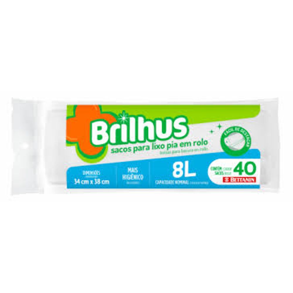 O Saco para Lixo em Rolo 8L com 40 Unidades Brilhus Bettanin é ideal para o descarte prático e organizado de resíduos leves do dia a dia. Produzido em material de qualidade, oferece resistência adequada para uso doméstico, sendo perfeito para lixeiras pequenas de banheiro, lavabo, escritório ou cozinha. Seu formato em rolo facilita o armazenamento e o uso, permitindo destacar os sacos com mais praticidade. Com capacidade de 8 litros e embalagem com 40 unidades, proporciona ótimo rendimento e custo-benefício, garantindo mais higiene, organização e a confiança da marca Brilhus Bettanin.