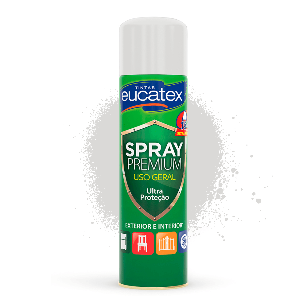 A tinta Spray Premium Multiuso branco brilhante 400ml Eucatex com ultra proteção e acabamento brilhante é indicada para pintura de geladeiras, bicicletas, móveis de aço, brinquedos, objetos artesanais e decoração em geral, em ambientes externos e internos.